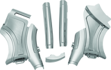 Cover unsightly frame welds and hoses with brilliant chrome. This kit customizes the steering neck and also includes chrome down tube covers for a seamless transition. Bolt-on design with opening for VIN number access.